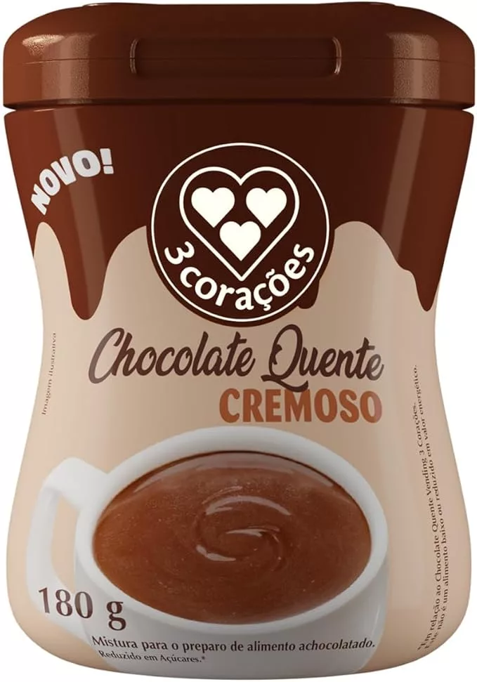 3 Corações Chocolate Quente em Pó Cremoso, 180g