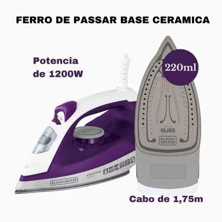 Black Decker Ferro de Passar Roupa, com Vaporizador, Base Antiaderente, Modelo FX2500, 110V