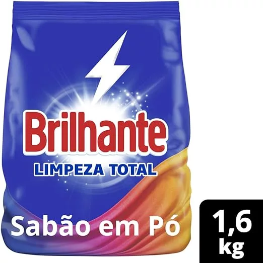 Brilhante Limpeza Total – Lava-Roupas em Pó, Roupas Brancas e Coloridas, Ativo Concentrado, Pacote 1,6kg