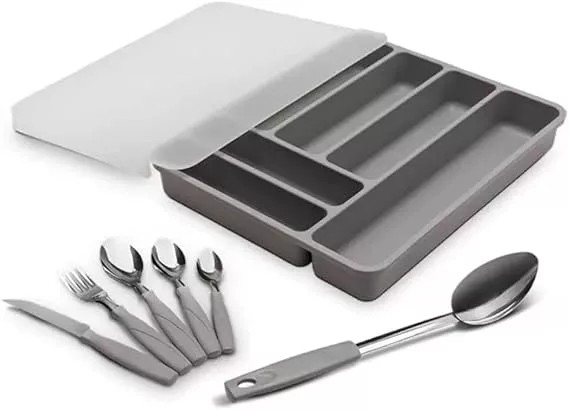 Faqueiro Itaparica + Organizador de gaveta, 32 Peças, Cinza Frio, Brinox