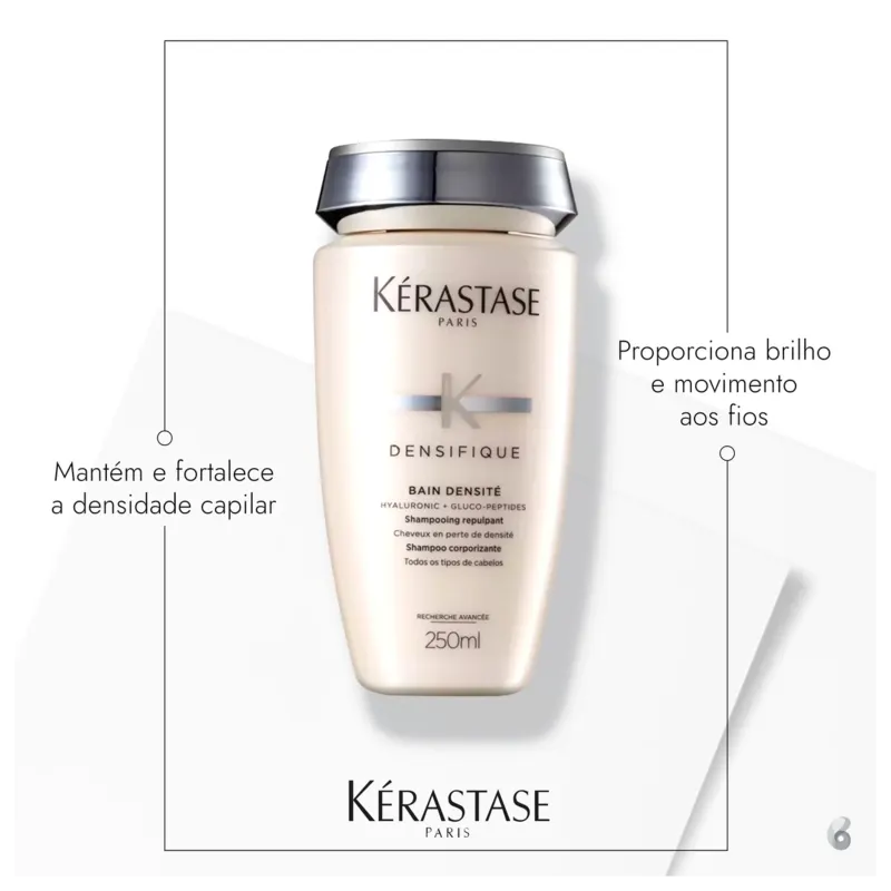 Kérastase Shampoo Densifique Bain Densité, Sem densidade e volume, Densidade, volume, Ácido Hialurônico, 250 ml
