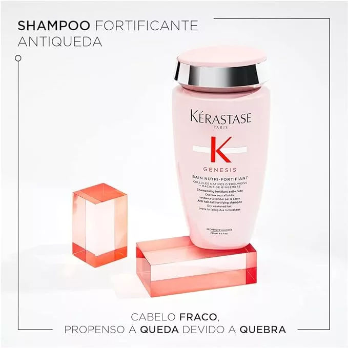 Kérastase Shampoo Genesis Bain Nutri-Fortifiant, Cabelos com queda, Cabelo grossos, Prevenção da queda, Flor de Edelweiss, Raiz de gengibre, 250 ml