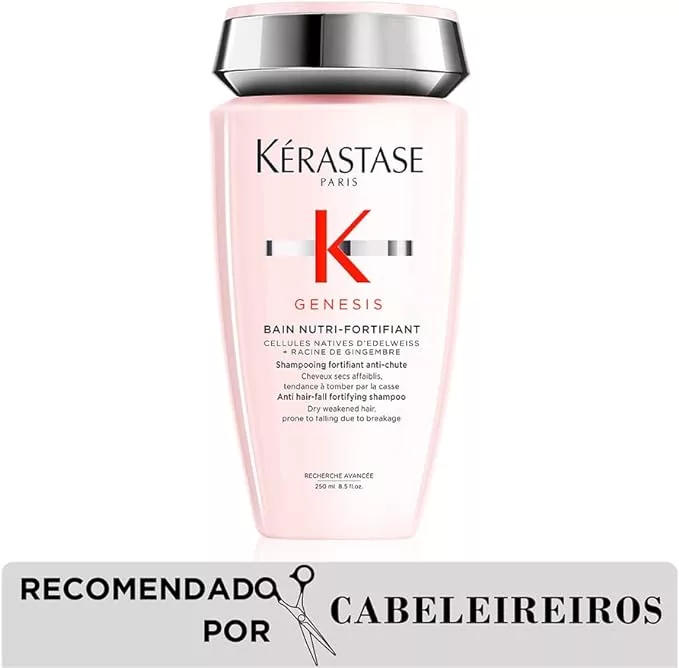 Kérastase Shampoo Genesis Bain Nutri-Fortifiant, Cabelos com queda, Cabelo grossos, Prevenção da queda, Flor de Edelweiss, Raiz de gengibre, 250 ml