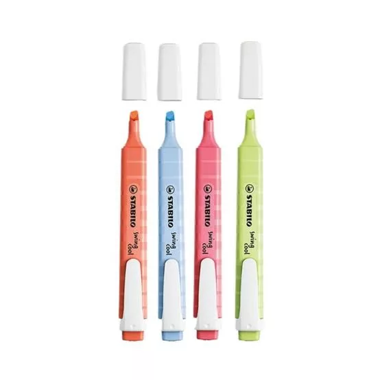 Marca Texto – STABILO Swing Cool Pastel – Estojo com 4 unidades – Em 4 cores