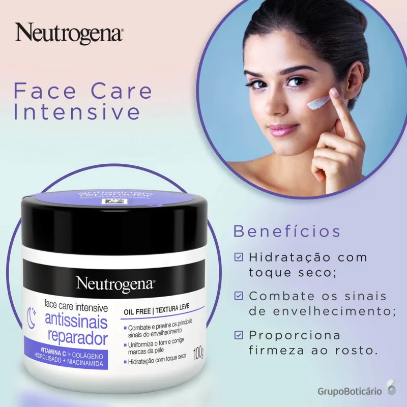 Neutrogena Hidratante Facial Antissinais Reparado Face Care Intensive, 100g