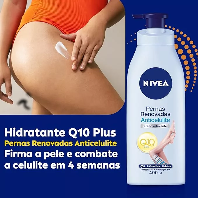 NIVEA Hidratante Desodorante Anticelulite Q10 Pernas Renovadas 400ml – Melhora visivelmente a aparência das celulites e firma a pele em 4 semanas, além de aliviar a sensação de cansaço e inchaço das pernas