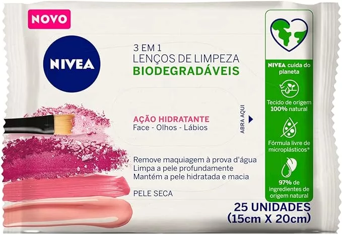 NIVEA Lenço de Limpeza Demaquilante Facial Ação Hidratante 3 em 1 25 unidades – Remove a maquiagem à prova d’água, hidrata a pele, limpa profundamente sem precisar lavar o rosto