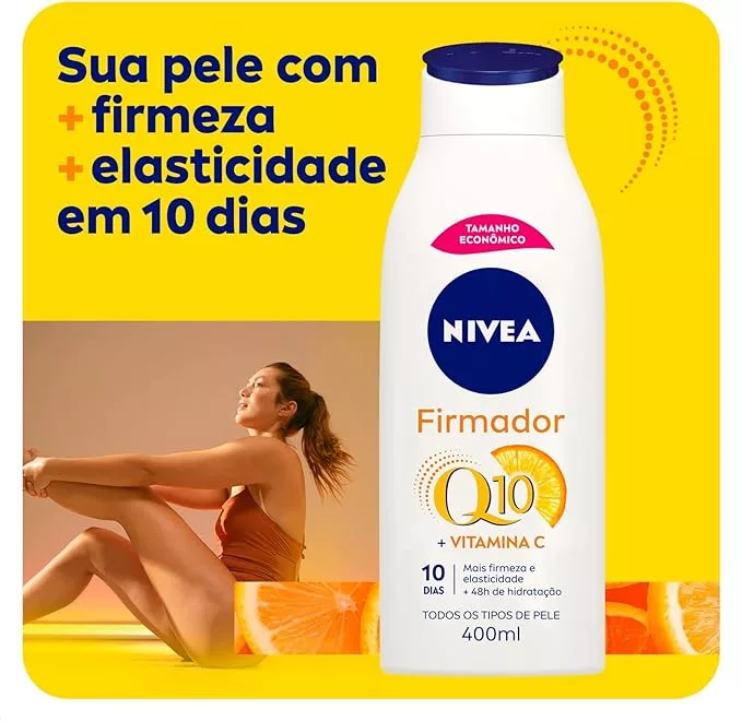 NIVEA Loção Hidratante Firmador Q10 + Vitamina C Todos os Tipos de Pele 400ml – Sua pele com mais firmeza e mais elasticidade em 10 dias, ainda hidratada e cheia de brilho, livre de flacidez