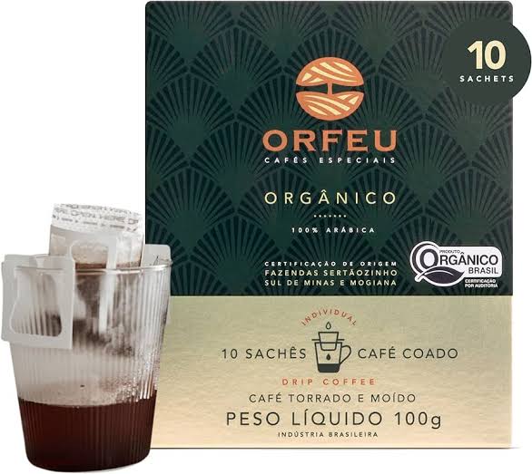 Orfeu Café Orgânico Drip Coffee, 100% Arabica, Torra Média, 10 sachet, 100g